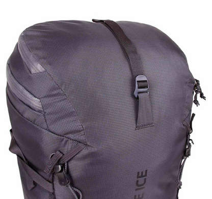 The feature set is based around the needs of mountain professionals, who value the ability to organize and have a quick access to the gear. The full-length zip access (32L only) makes this pack extremely practical. A beefy back panel and carry system take care of load management, and the low-profile hybrid shoulder straps and stashable waist belt will not interfere with ropework or harnesses. The 3D patterned pick tunnel creates a snug pocket around axe heads for a super stable axe carry. Weather resistant YKK zips and C0 DWR treated fabrics offer durability and water protection.