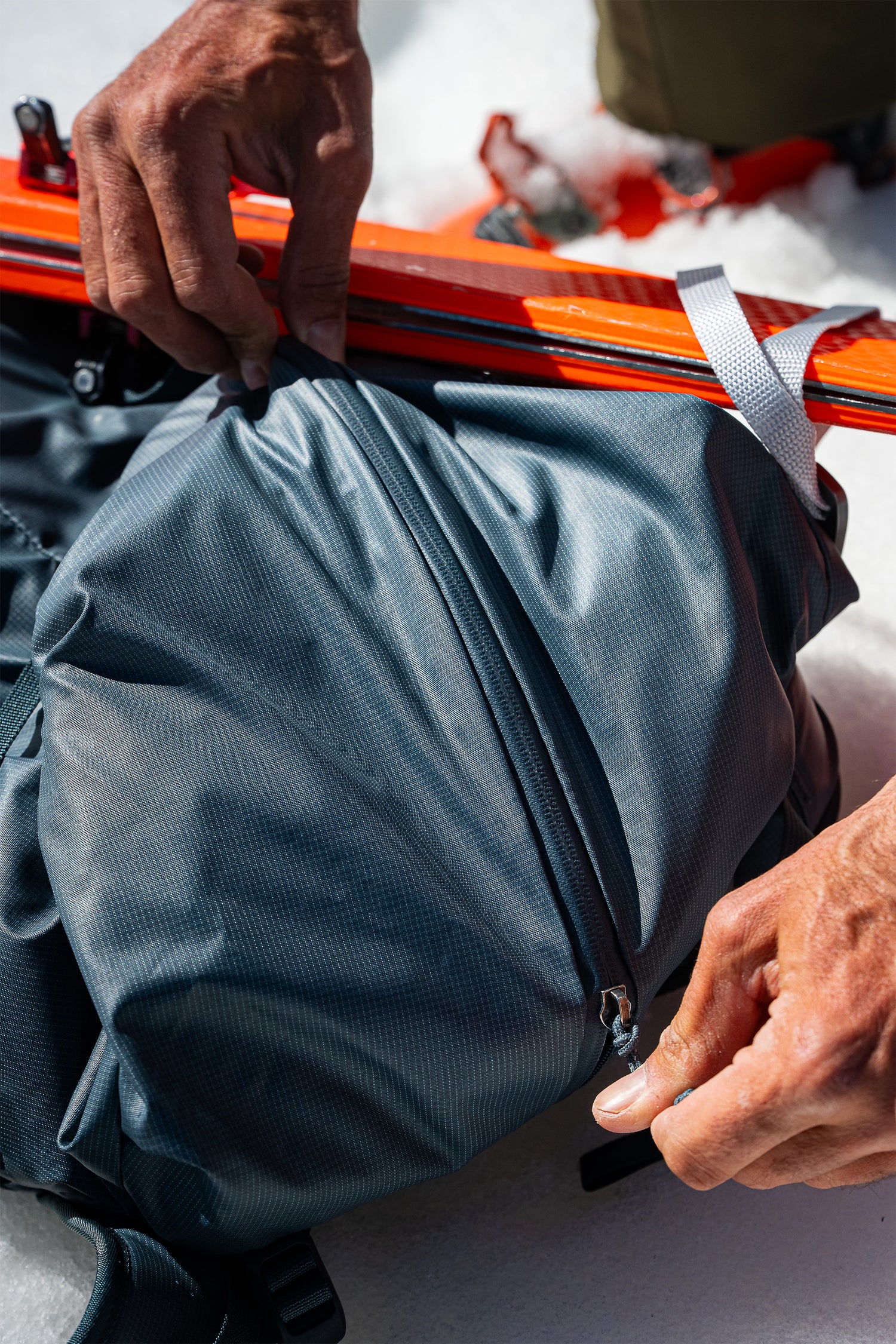 • Adjustable 2kN carabiner for clipping and carrying skis diagonally
